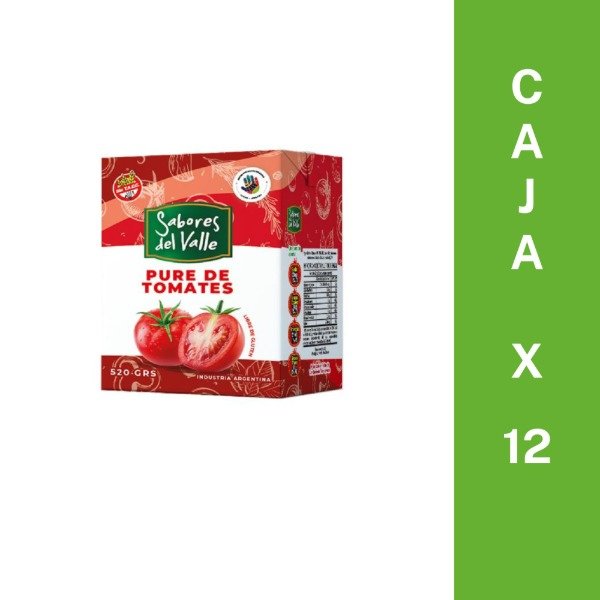 Caja cerrada de pure de tomate marca Sabores del Valle por 12 unidades de 520 grs
